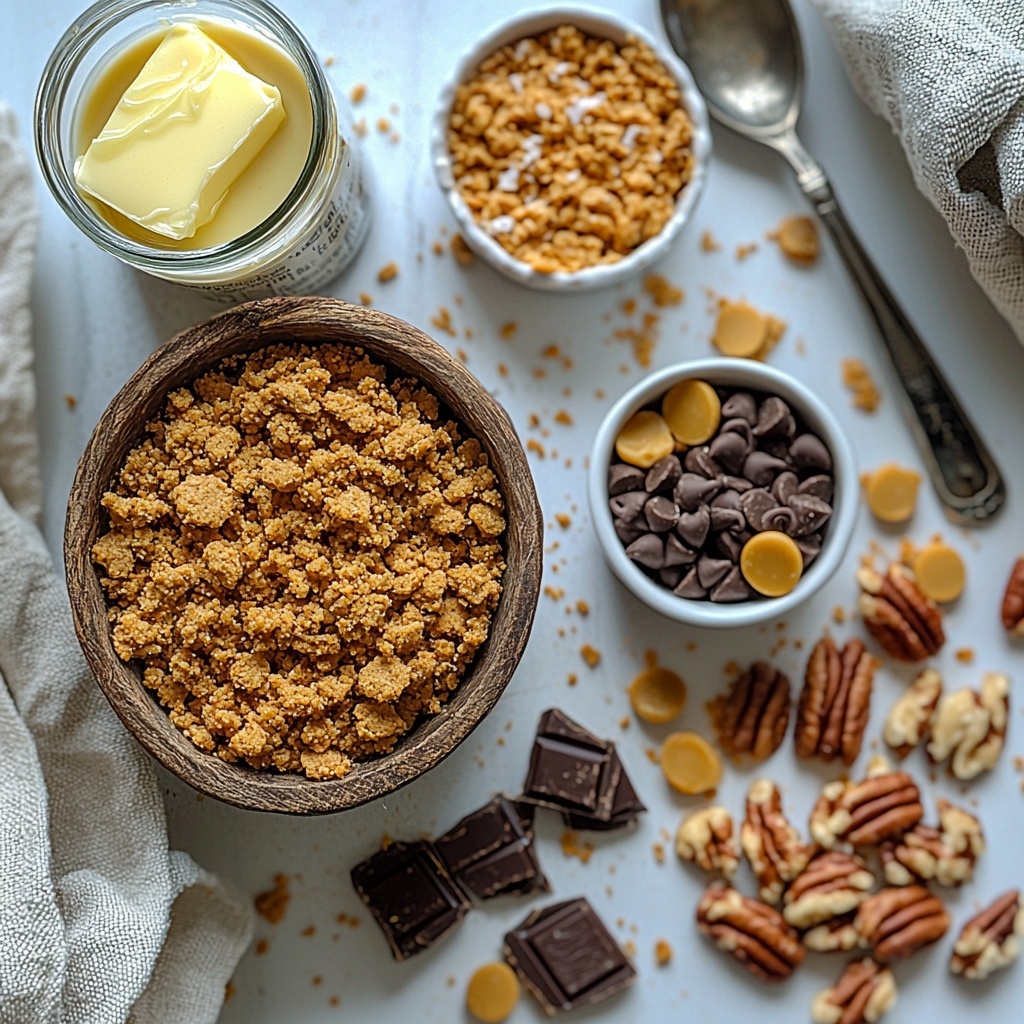 - ½ cup salted butter (melted): Binds the crust ingredients with rich flavor and moisture.