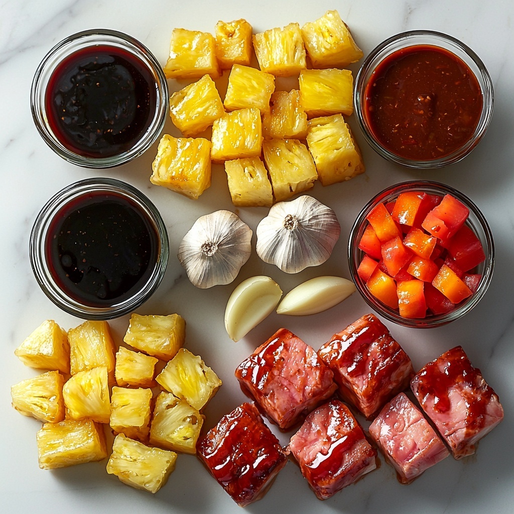 - 1/4 cup teriyaki sauce: Offers a sweet and salty backbone that complements the pineapple’s tropical sweetness.