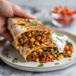 - Assemble the burritos: Place one burrito-sized flour tortilla on a flat surface. Scoop approximately 1 cup of the filling mixture into the center of the tortilla. Fold in the sides over the filling, then starting at the bottom, roll tightly up to enclose the filling completely, ensuring the burrito stays secure and doesn’t unravel during cooking.