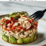 On a serving plate, start by spreading half of the avocado mixture as the bottom layer. Then add the tuna mixture on top of the avocado, forming a second layer. Finally, spoon half of the fresh pico de gallo salsa over the tuna. Repeat this layering for the second serving. The layers create a visually appealing dish that’s as beautiful as it is delicious.