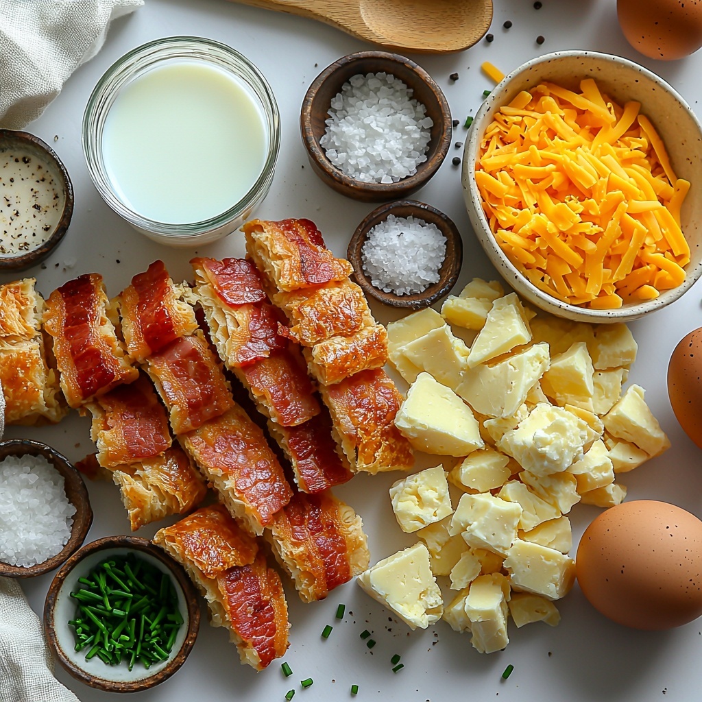 Keeping it simple is the secret to this dish’s charm. Each ingredient plays a crucial role, from the flaky croissants that soak up all those custardy egg flavors, to the crispy bacon adding that perfect crunch and smoky hit. The blend of two cheeses brings creamy texture and color, while the spices subtly elevate the whole dish.