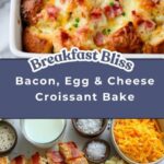 This Bacon, Egg, and Cheese Croissant Bake is a savory breakfast casserole that combines crispy baked bacon, fluffy eggs, melty cheddar cheeses, and buttery croissant pieces for a hearty and comforting meal. Perfect for feeding a crowd or meal prep, it can be baked immediately or assembled ahead and refrigerated overnight for convenience.