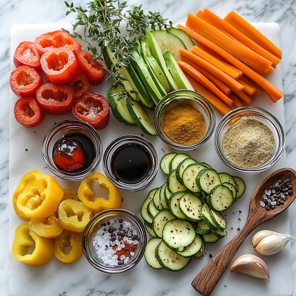 This Balsamic Roasted Vegetables recipe offers a flavorful and healthy side dish featuring a colorful mix of bell peppers, zucchini, and carrots. Tossed in a tangy balsamic vinegar and olive oil dressing seasoned with garlic powder and oregano, these vegetables are oven-roasted to perfection, making them tender and full of rich, savory flavor. Perfect for a quick and nutritious addition to any meal.