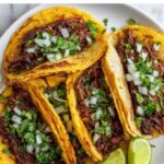 These authentic Birria Tacos feature tender, slow-simmered beef chuck roast in a rich, flavorful guajillo chile sauce, served in warm corn tortillas with fresh garnishes. Perfect for a delicious Mexican-inspired meal, these tacos bring bold spices and a melt-in-your-mouth texture that will satisfy any taco lover.