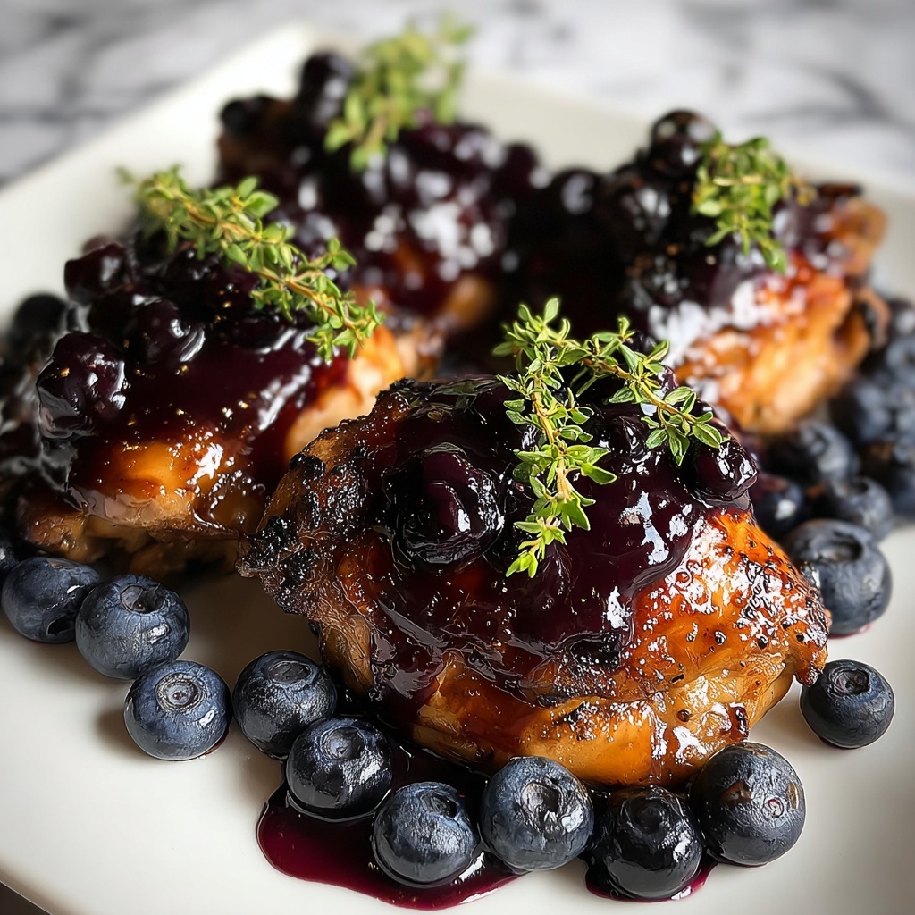 For a stunning presentation, serve the chicken sliced over a bed of wild rice or quinoa, spoon the blueberry thyme sauce artfully on top, and sprinkle edible flowers for an elegant touch. This dish also shines on a rustic wooden board with fresh herbs scattered around.