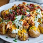 This Buffalo Ranch Chicken Potato Bake is a flavorful and comforting one-dish meal perfect for weeknights. Tender chicken breasts are nestled among seasoned baby potatoes and red onions, then smothered in a tangy buffalo sauce mixed with creamy ranch dressing. Baked until juicy and topped with melted cheddar cheese and fresh chives, this casserole delivers a spicy, cheesy, and hearty dinner all in one pan.