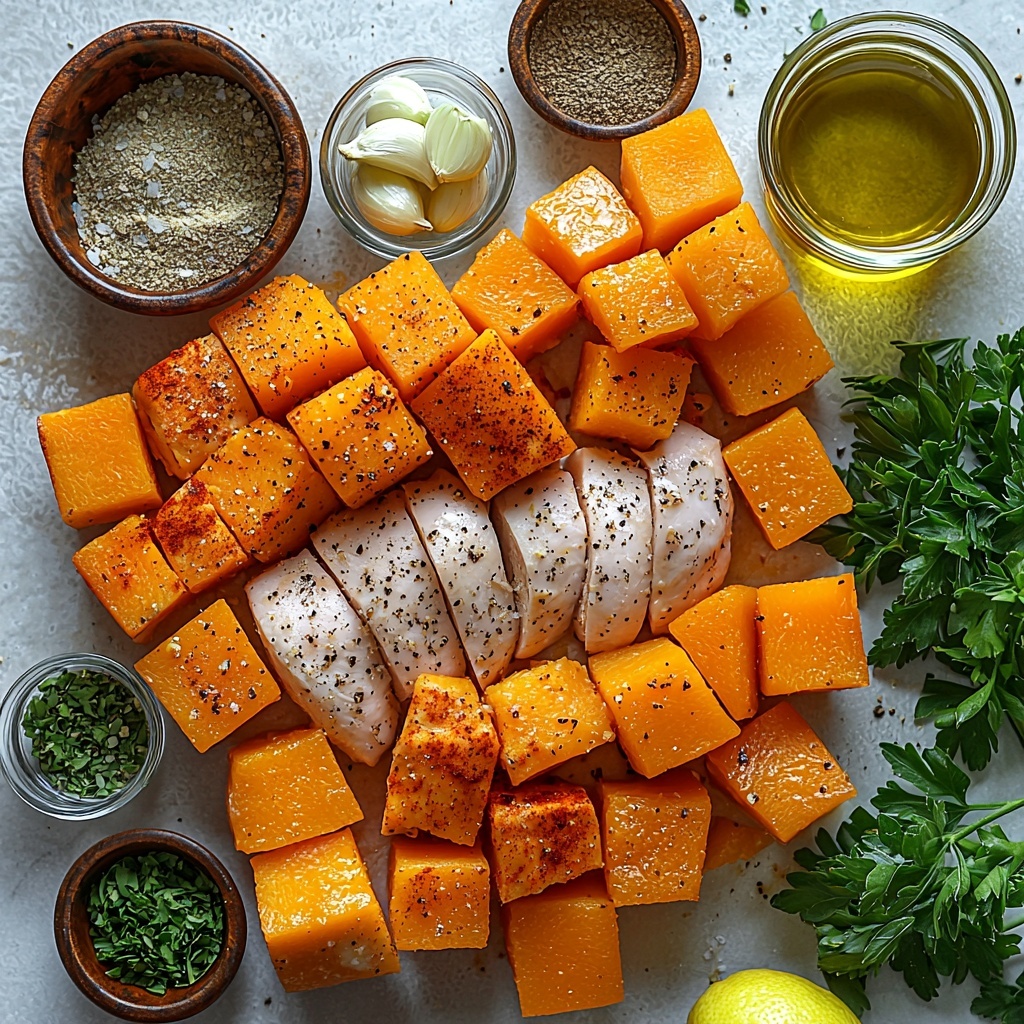 Gathering the simple ingredients for this recipe is a breeze, yet each one plays a crucial role in building the comforting depth and vibrant colors of the dish. From the juicy chicken that offers hearty protein to the naturally sweet butternut squash that melts beautifully, you’ll see how every item shines.