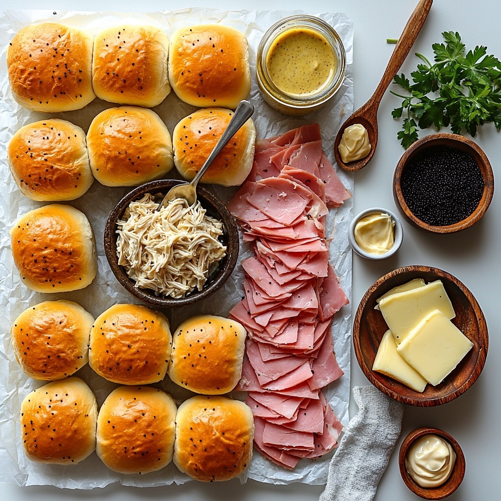 Sprinkle finely chopped fresh parsley over the warm sliders once they come out of the oven. Not only does this add a lovely splash of color, but it brightens the buttery richness with a hint of fresh herb flavor. Let the sliders rest for about 5 minutes—this allows everything to set slightly so they slice cleanly and the flavors meld.
