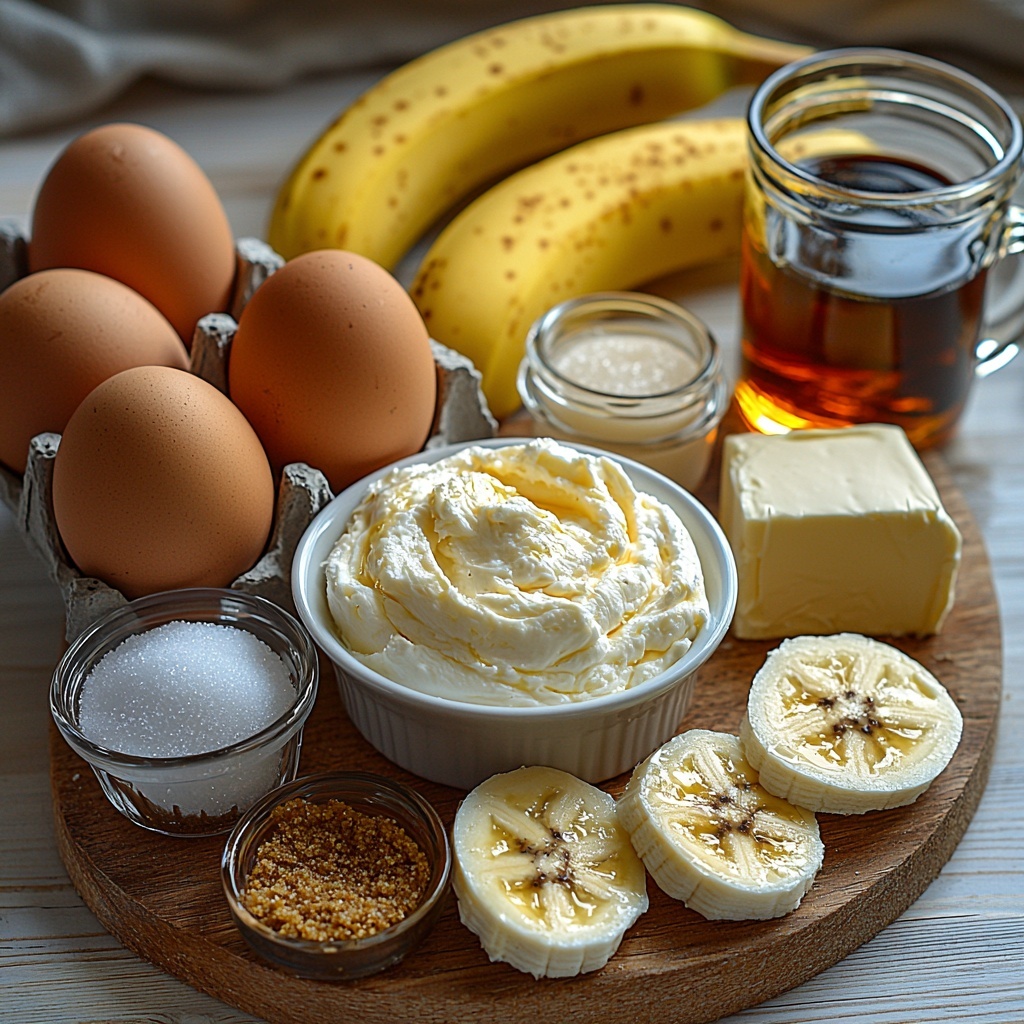 These ingredients are straightforward but essential for crafting a cheesecake that is creamy, smooth, and bursting with flavor. Each component plays a crucial role—whether it’s the tang from sour cream, the mellow sweetness of ripe bananas, or the rich aroma of rum creating that spectacular glaze.