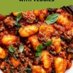 Stir the gnocchi directly into the skillet or transfer the beef and veggie sauce mixture into a large baking dish if your skillet isn’t oven-safe. Mix gently to coat every pillowy gnocchi in the sauce—this step ensures every bite is a delight.