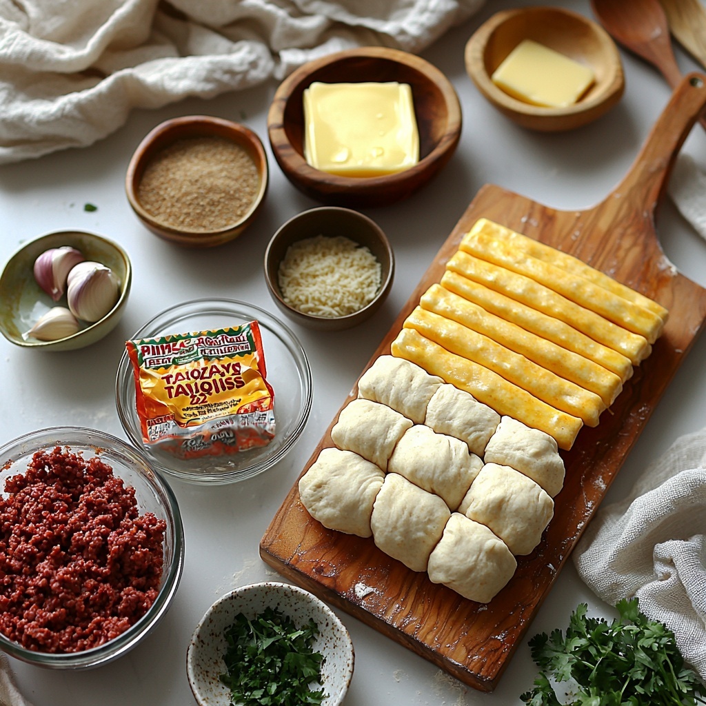 This Cheesy Taco Sticks Recipe is delightfully simple, relying on a handful of everyday ingredients that combine to create an unforgettable flavor explosion. Each component plays a crucial role—from the lean ground beef providing hearty richness, to the taco seasoning adding that perfect southwestern kick, and the dough bringing a wonderfully tender texture to the dish.