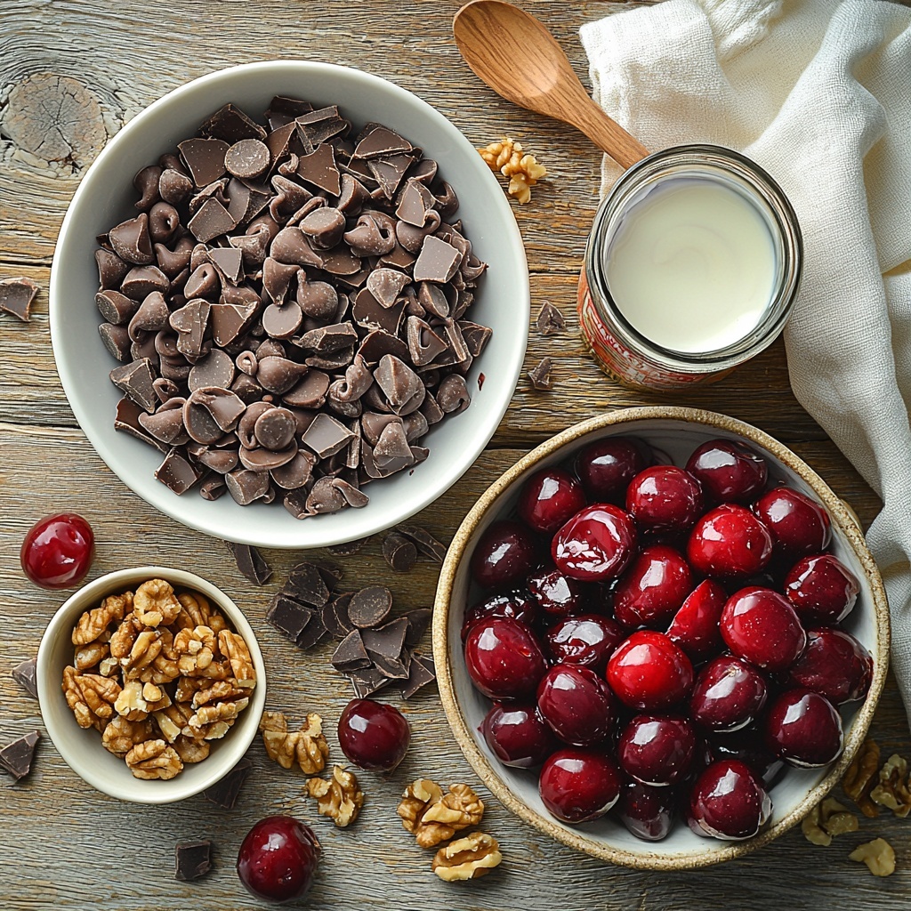 The Cherry Garcia Fudge Recipe calls for a handful of straightforward ingredients that come together to create a lush texture and unforgettable flavor. Each item is chosen to balance sweetness, tartness, and crunch perfectly.