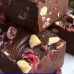 Cherry Garcia Fudge is a luscious, creamy chocolate treat infused with sweet cherries and crunchy walnuts. This no-bake fudge combines rich semisweet chocolate with sweetened condensed milk, enhanced by the fruity burst of chopped cherries and a hint of vanilla. Perfectly chilled to set, it offers a delightful balance of textures and flavors, making it an irresistible dessert for chocolate and cherry lovers.