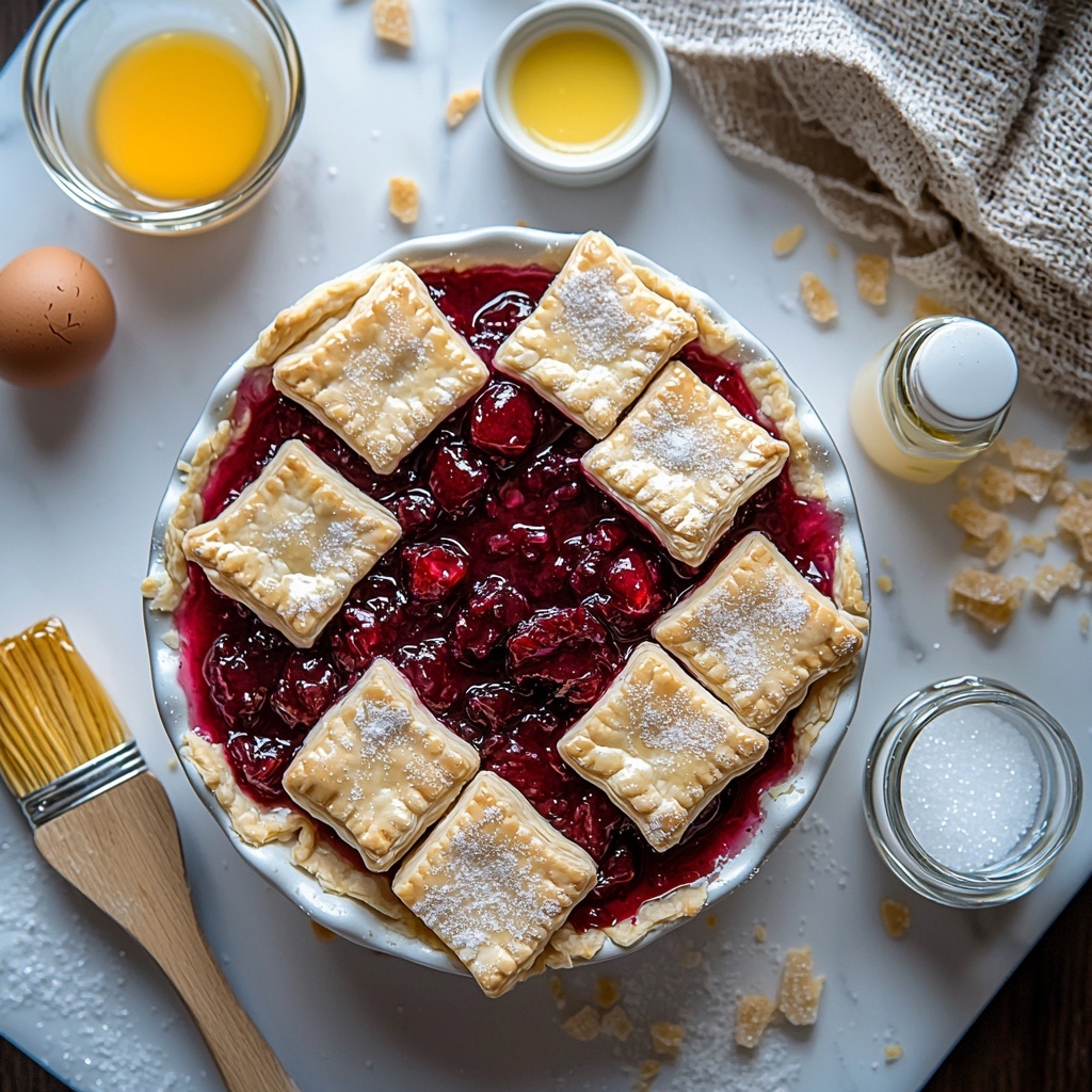 In a medium bowl, blend the cherry pie filling with cornstarch, sugar, lemon juice, and vanilla extract. This mixture not only intensifies the flavor but also ensures the filling thickens nicely so it won’t leak during baking. The balance of tart and sweet here is key to that irresistible cherry taste we all crave.