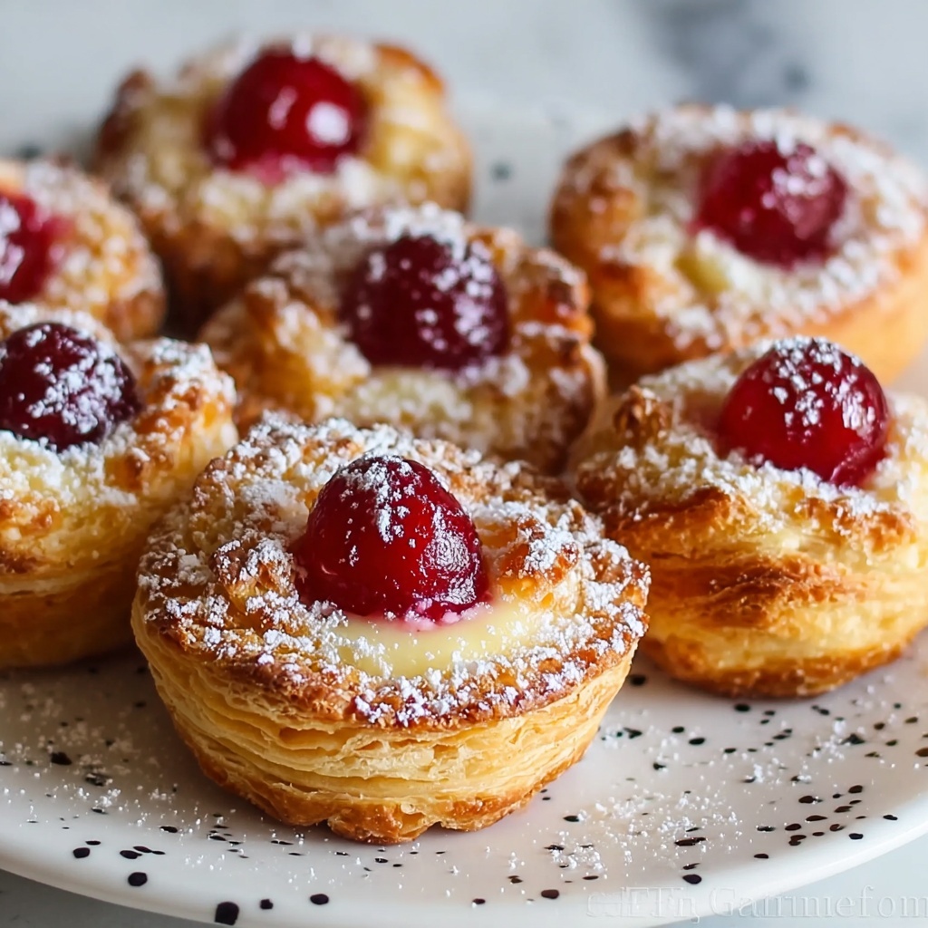These bite-sized treats pair wonderfully with a hot cup of coffee or tea for a cozy snack. For a brunch spread, consider serving them alongside creamy yogurt or a fresh fruit salad to balance the rich pastry and tart cherries.