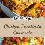 Fresh garnishes can take this Chicken Enchilada Casserole Recipe to the next level. Try dolloping creamy sour cream, scattering chopped cilantro, or adding a few slices of ripe avocado to introduce freshness and contrast to the cheesy richness. A squeeze of lime will also brighten each bite, making every forkful an exciting, layered experience.