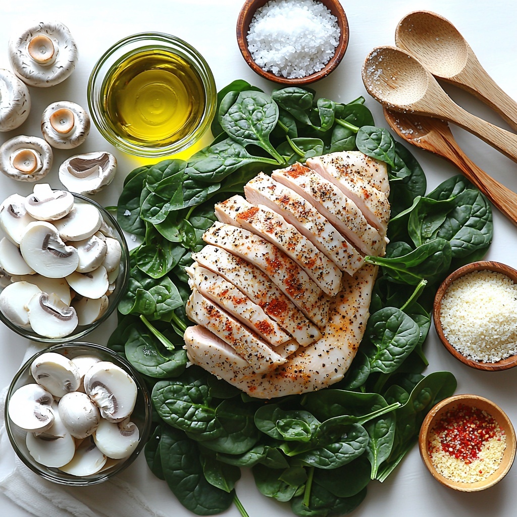 Gathering simple, fresh ingredients is key to nailing this Chicken Spinach Mushroom Low Carb Oven Dish Recipe. Each component plays a vital role, contributing texture, flavor, or color to make the dish vibrant and well-rounded.