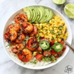 This vibrant and flavorful Chipotle Shrimp Avocado and Mango Rice Bowl combines spicy, smoky shrimp with a fresh mango avocado salad, served over steamed rice and topped with roasted corn. A perfect quick and healthy meal packed with bold flavors and textures.
