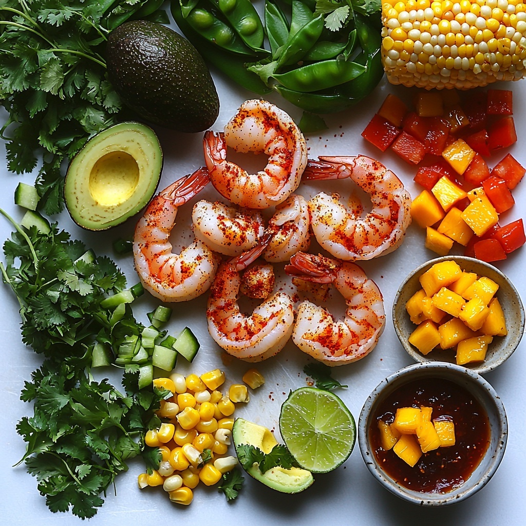 - 1 mango, diced: Sweet and juicy contrast that pairs perfectly with the spicy shrimp.