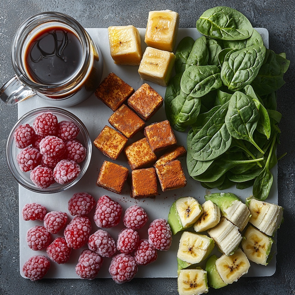 • 1 ½ cups raspberries, frozen: These add vibrant color, natural tartness, and a powerful antioxidant boost.