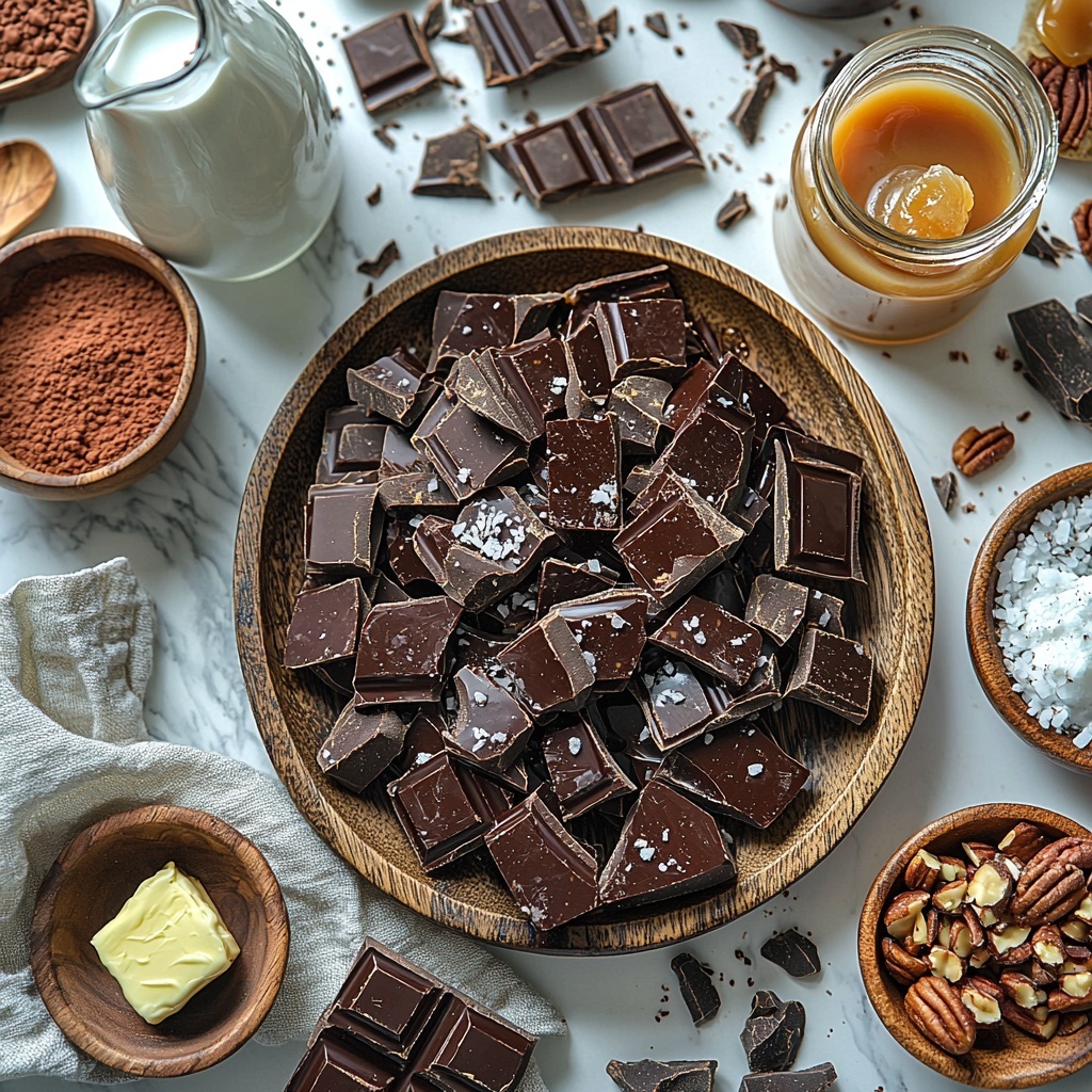 - Prep caramel centers: If using soft caramel candies, cut them into small pieces suitable for the center of each truffle. If using thick caramel sauce, spoon small dollops onto a tray and freeze them for 10–15 minutes to make them easier to handle and wrap.