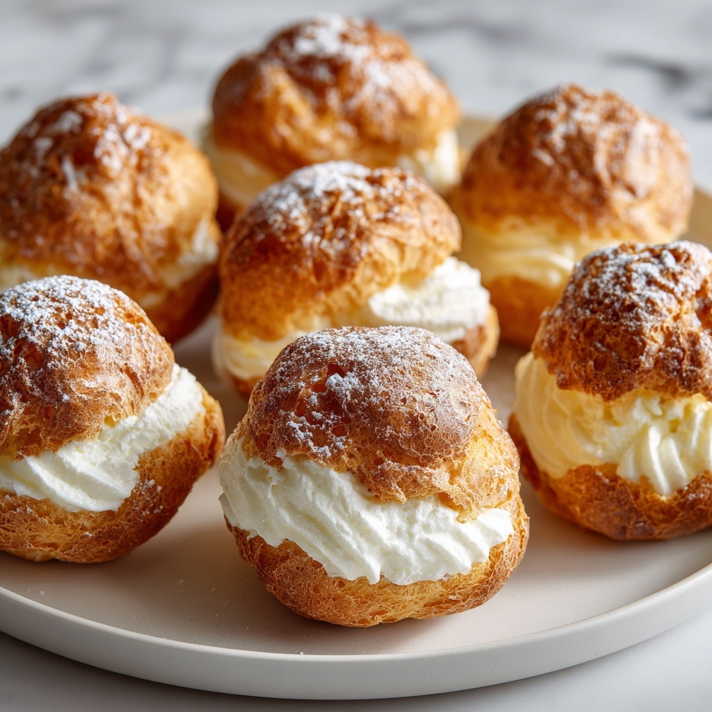 - Assemble the Pastry Puffs: Allow the baked choux puffs to cool completely on a wire rack. Once cooled, use a small spatula or piping bag to fill each puff generously with the chilled vanilla pastry cream. Dust the filled puffs with powdered sugar just before serving to add a touch of sweetness and elegance. Serve immediately for the best texture and flavor experience.