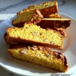 - Slice Biscotti: Remove from the oven and allow the log to cool slightly before slicing into individual biscotti pieces about 1/2 inch thick.