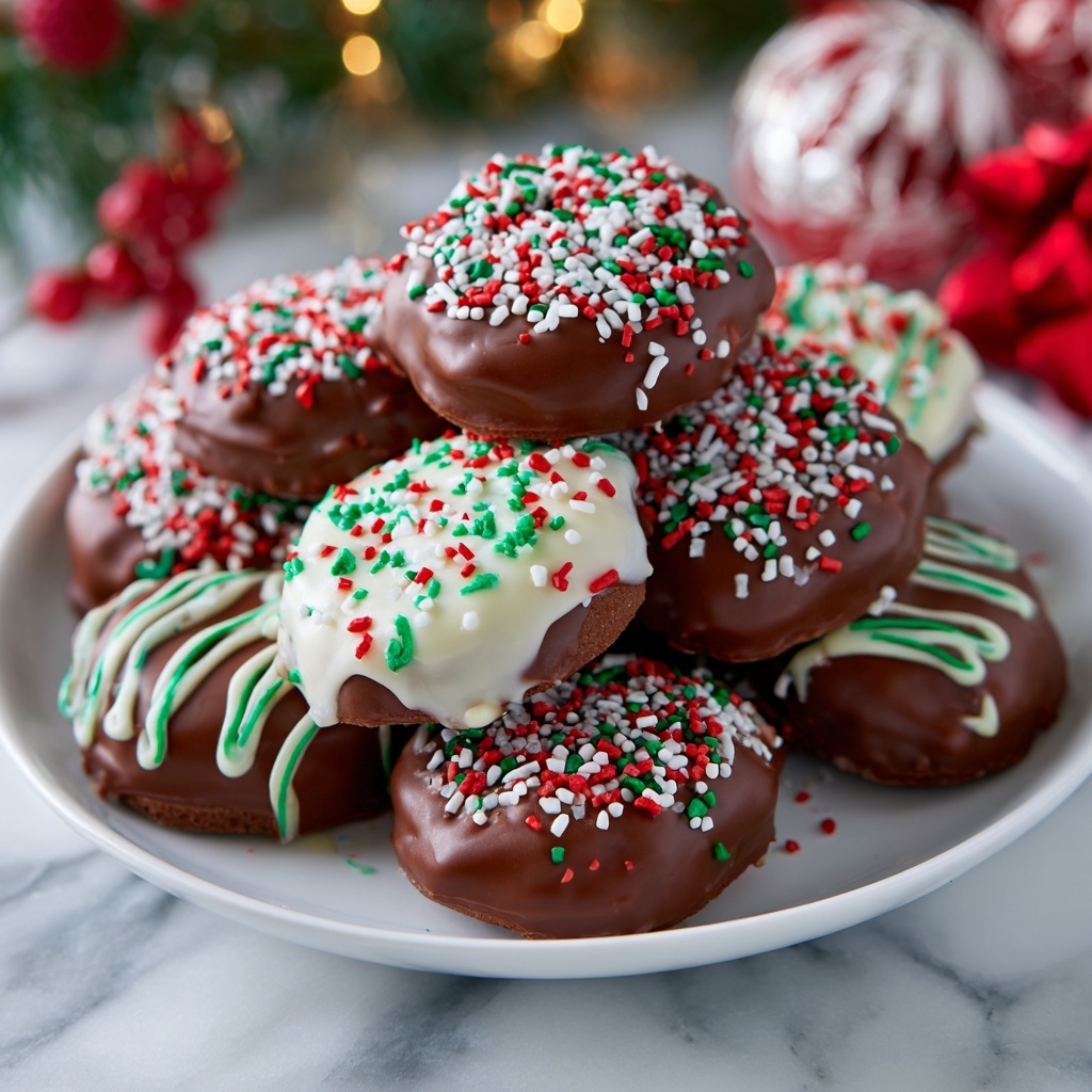 - Decorate and set: While the chocolate is still wet, optionally add sprinkles, edible glitter, or color accents to enhance the festive look. Place coated patties back onto the parchment paper and allow the chocolate to set at room temperature or in the refrigerator.