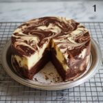- Create marbled effect: Drop large spoonfuls of the chocolate batter on top of the vanilla batter in the pan. Using a knife, gently swirl the chocolate batter through the vanilla batter to create a marbled pattern. Be careful not to overmix.
