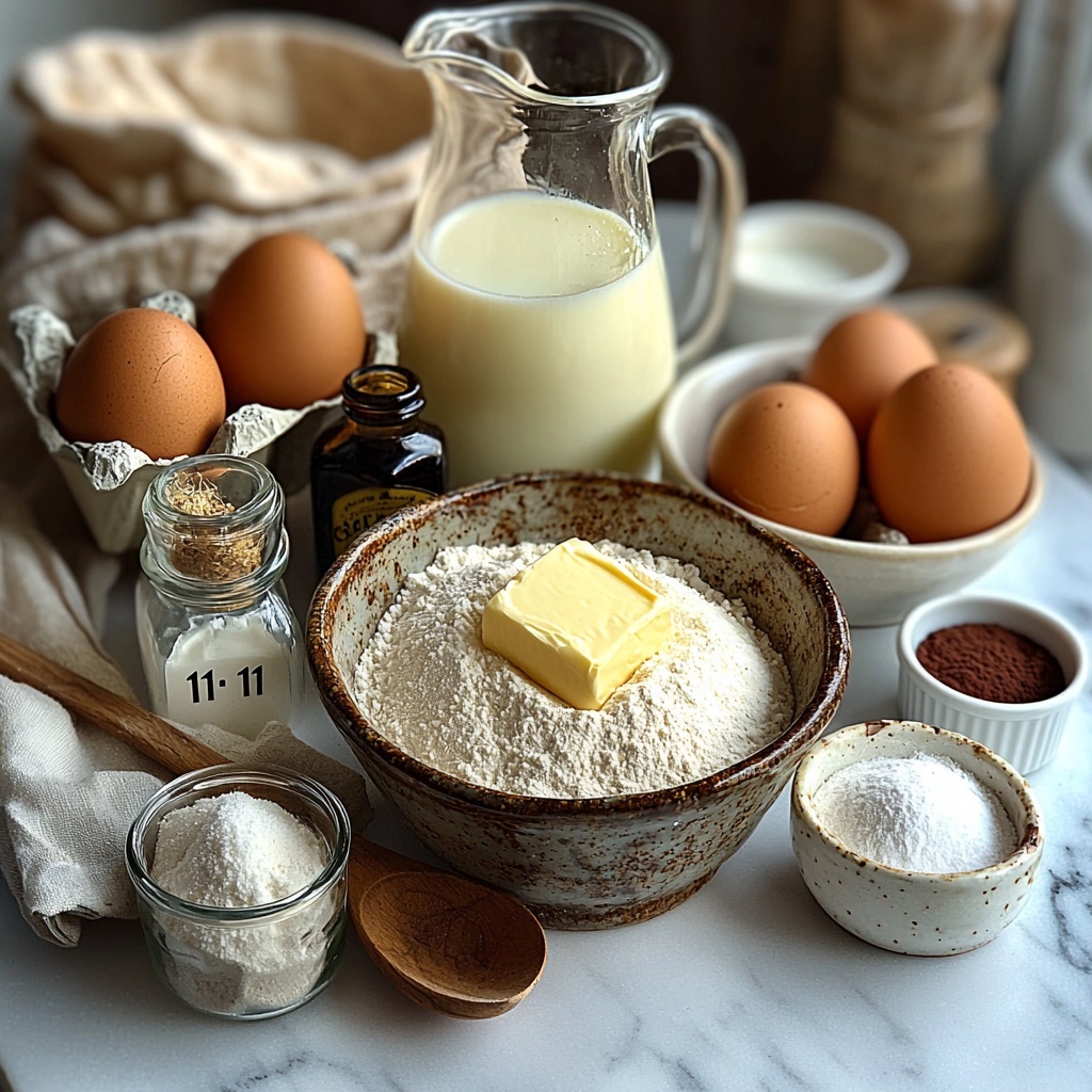 The beauty of this Classic Marble Cake Recipe lies in its simplicity. Each ingredient plays a crucial role in balancing flavor, texture, and that iconic marbled look you can’t resist. Here’s what you need to gather before the magic happens:
