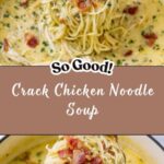 Crack Chicken Noodle Soup is a rich and comforting soup featuring tender chicken, crispy bacon, creamy cheese, and hearty pasta simmered in a savory broth with fresh vegetables and Ranch seasoning for a flavorful twist.