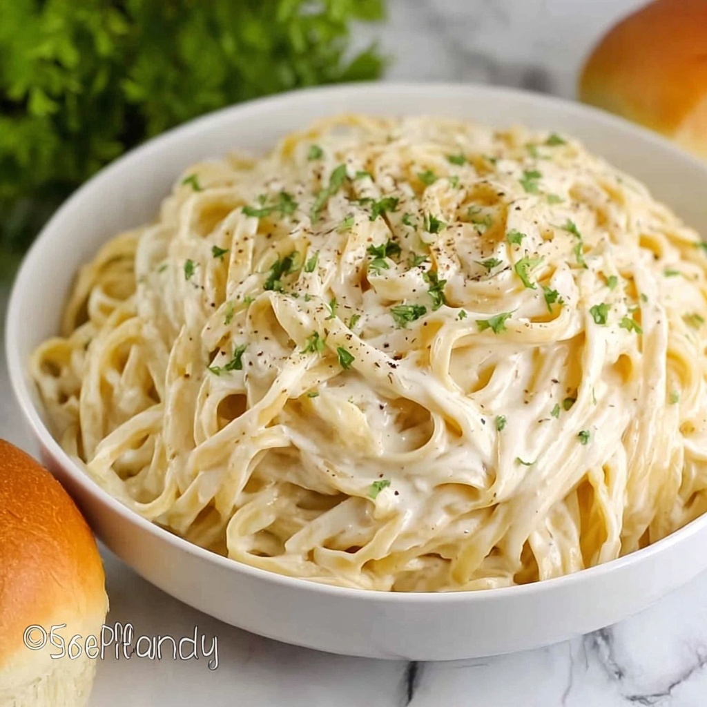 A creamy, comforting pasta dish featuring a luscious cream cheese sauce blended with garlic, butter, and Parmesan. This quick and easy recipe delivers rich flavor and silky texture perfect for a weeknight dinner or casual gathering.