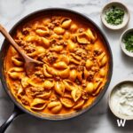 You can store leftover Creamy Beef and Shells Recipe in an airtight container in the refrigerator for up to 3 days. It keeps well and tastes just as delicious the next day—just perfect for an easy lunch or dinner.