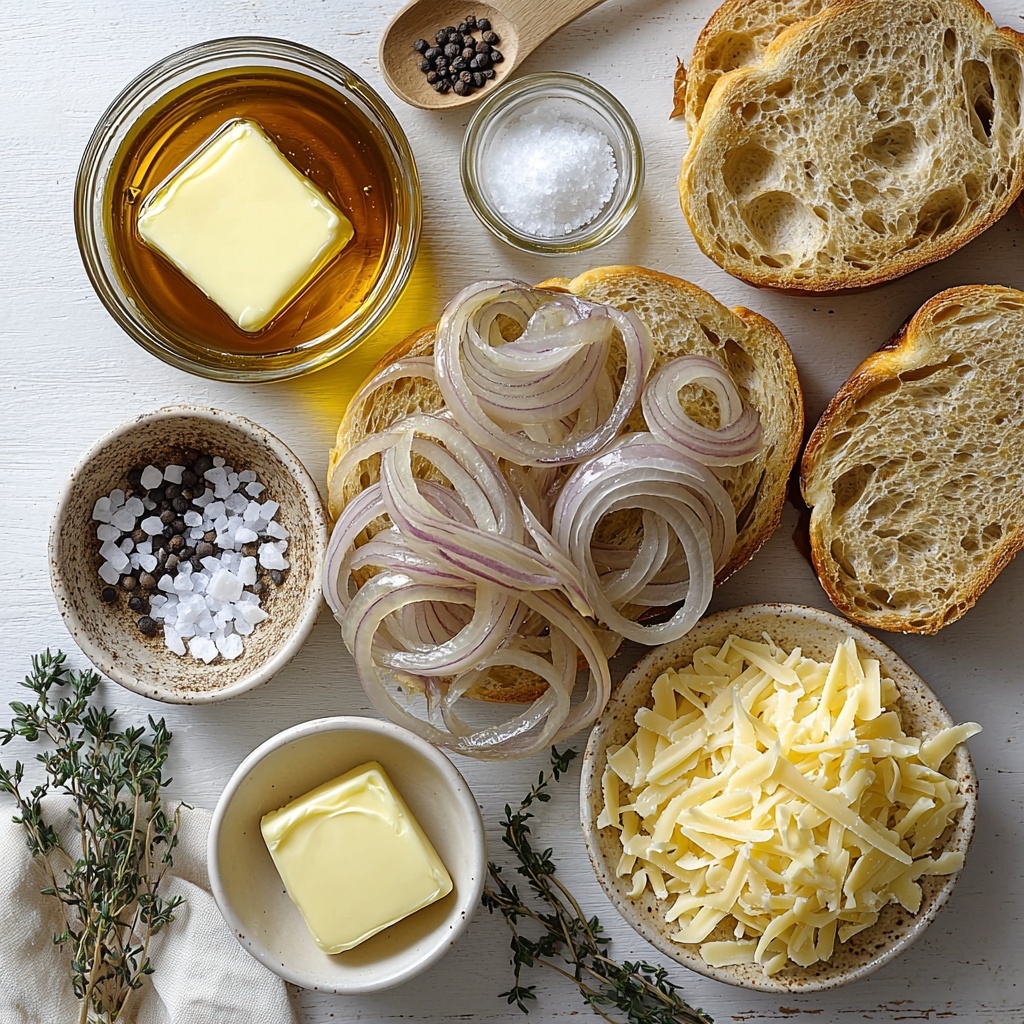 The ingredients for this recipe come together in such a simple yet spectacular way, each playing a vital role in creating that perfect balance of flavor, texture, and aroma. Fresh onions bring sweetness, butter and olive oil provide richness, and the cheese adds that irresistible melty topping that ties it all together.