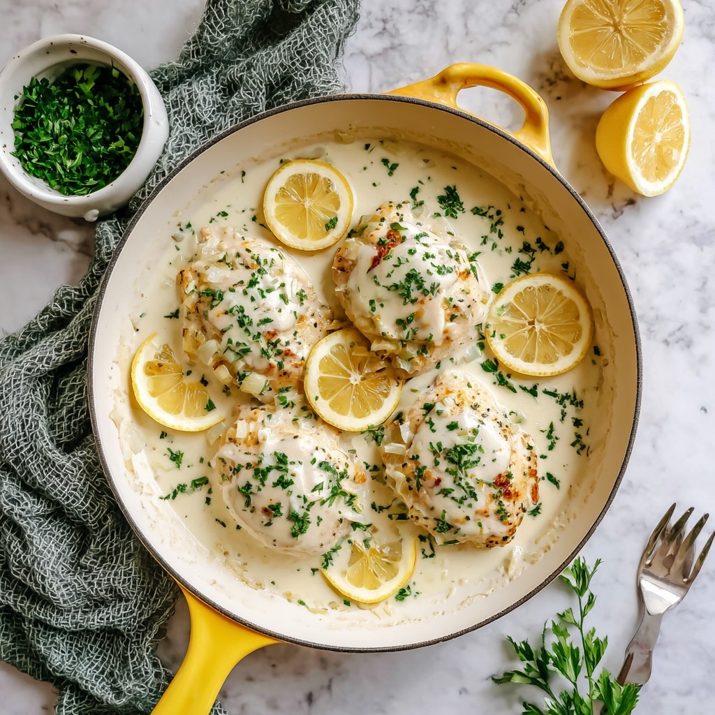 To give your Creamy Lemon Chicken Recipe a fresh, vibrant finishing touch, sprinkle some chopped parsley or fresh thyme leaves over the top right before serving. A few thin lemon slices or extra lemon zest also add a lovely pop of color and highlight the citrus flavor, making the dish even more inviting.