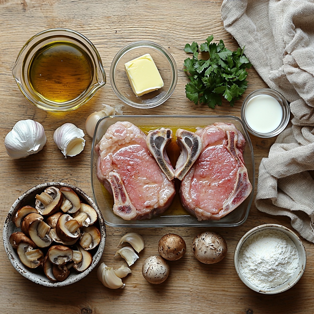 This Creamy Mushroom Pork Chops Recipe relies on simple yet essential ingredients that each bring something unique to the dish — flavor, texture, or that irresistible creamy finish. From the tender pork chops to the earthiness of fresh mushrooms, every component works in harmony to create a truly satisfying meal.