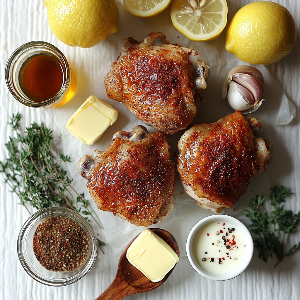 The magic of this Creamy Skillet Chicken Thighs Recipe lies in its straightforward ingredients. Each one plays a vital role, whether it’s the richness of butter, the brightness of lemon juice, or the aromatic punch of fresh thyme, all working together to build depth and balance in the dish.