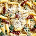 This Creamy Tuscan Sausage Pasta is a rich and flavorful dish featuring tender penne pasta tossed in a luscious sauce made from heavy cream, Parmesan cheese, and Italian seasonings. Combined with savory cooked ground sausage, fresh spinach, and sun-dried tomatoes, this recipe delivers a comforting and indulgent meal perfect for a family dinner or special occasion. Ready in just 40 minutes, it’s an easy yet impressive Italian-inspired pasta dish.