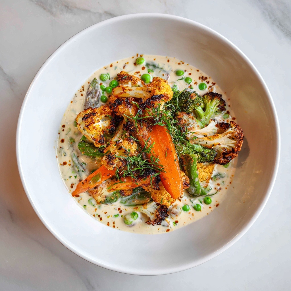 - Add Vegetables: Add the broccoli florets, sliced carrots, and cauliflower florets into the creamy mixture. Stir well to coat all the vegetables evenly.