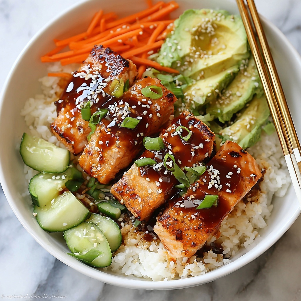 Adding garnishes like chopped green onions and toasted sesame seeds brings extra layers of texture and bursts of flavor that elevate the bowl beyond simple ingredients. The fresh green onions provide a mild sharpness that contrasts the rich salmon, while sesame seeds add a subtle crunch and nuttiness that is absolutely delightful.