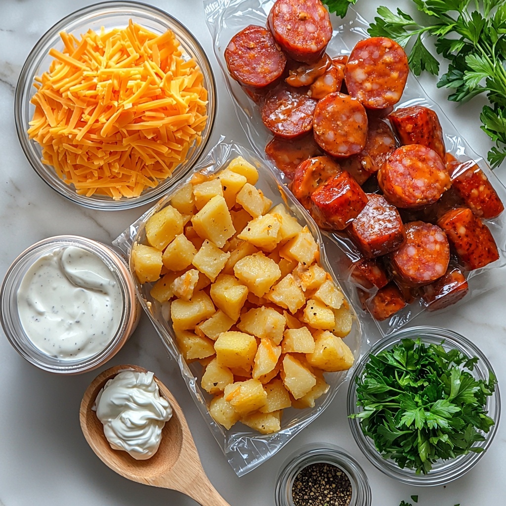 - Kielbasa sausage (1 14 oz package): Adds smoky, savory richness and a meaty bite that perfectly complements the potatoes.