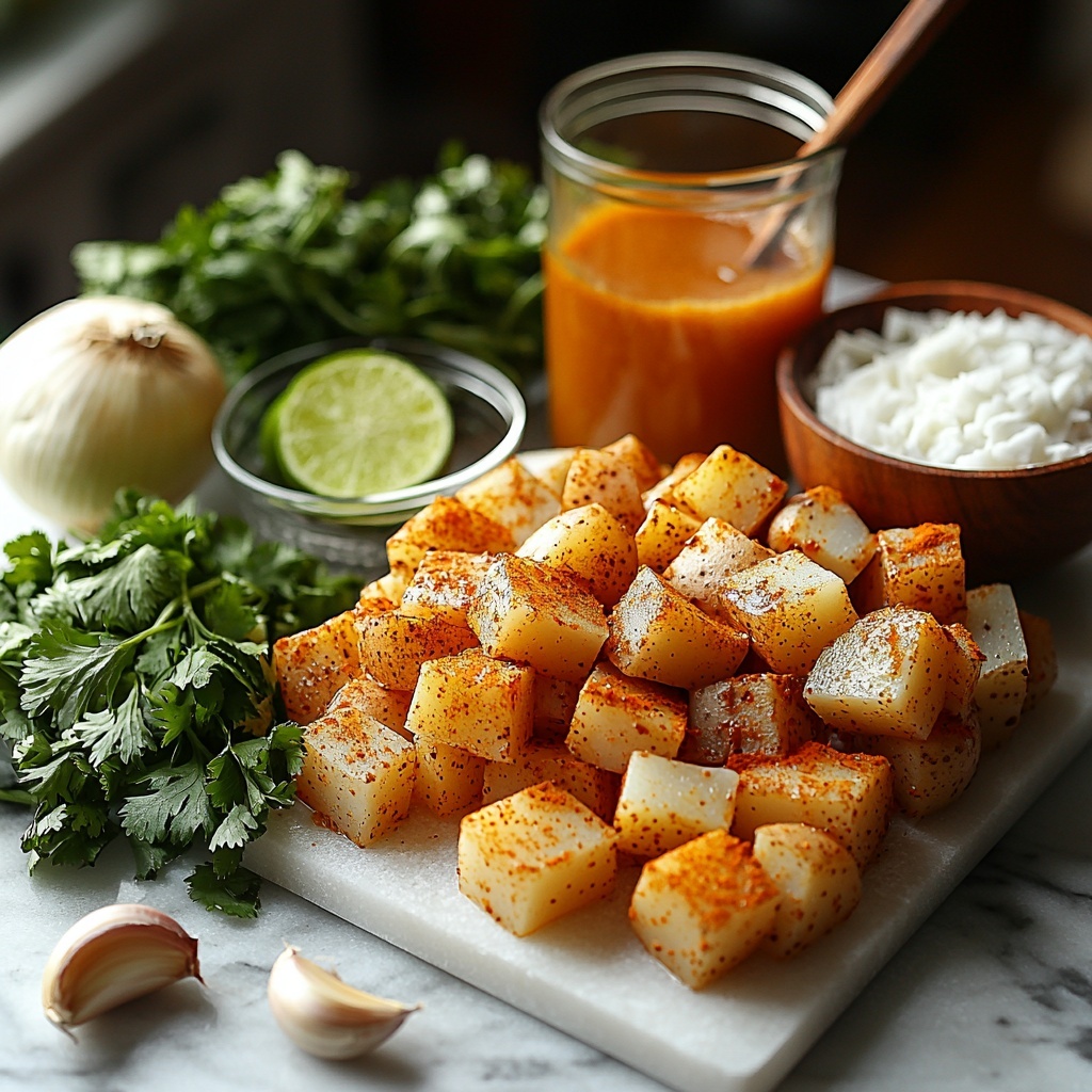 Start by washing, peeling, and dicing your potatoes into bite-sized cubes. Chop the onion finely and mince the garlic cloves. Prepping everything ahead makes the cooking process smooth and enjoyable, keeping you focused on those beautiful aromas you’re about to create.