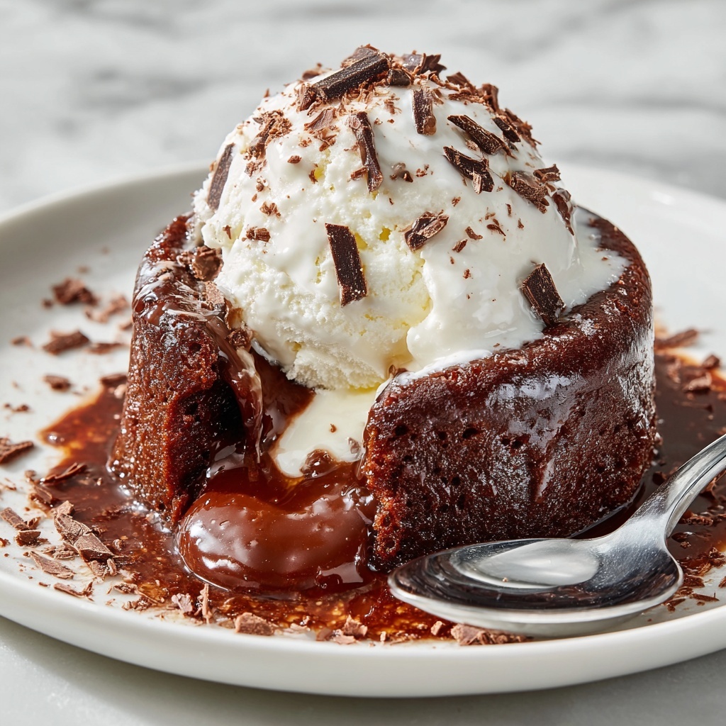In serving bowls, alternate pieces of your chocolate cake with generous scoops of creamy vanilla ice cream. This contrast of warm cake and cold ice cream invites pure indulgence.