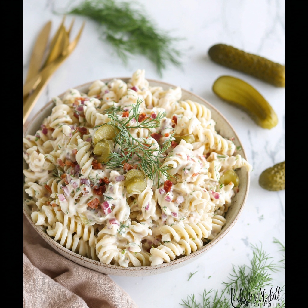 This Dill Pickle Pasta Salad is a tangy and creamy dish perfect for gatherings or a refreshing side. Featuring rotini pasta tossed in a zesty ranch and dill pickle dressing, combined with crunchy pickles, fresh dill, red onions, and crispy bacon, it’s a unique salad that’s both flavorful and satisfying.