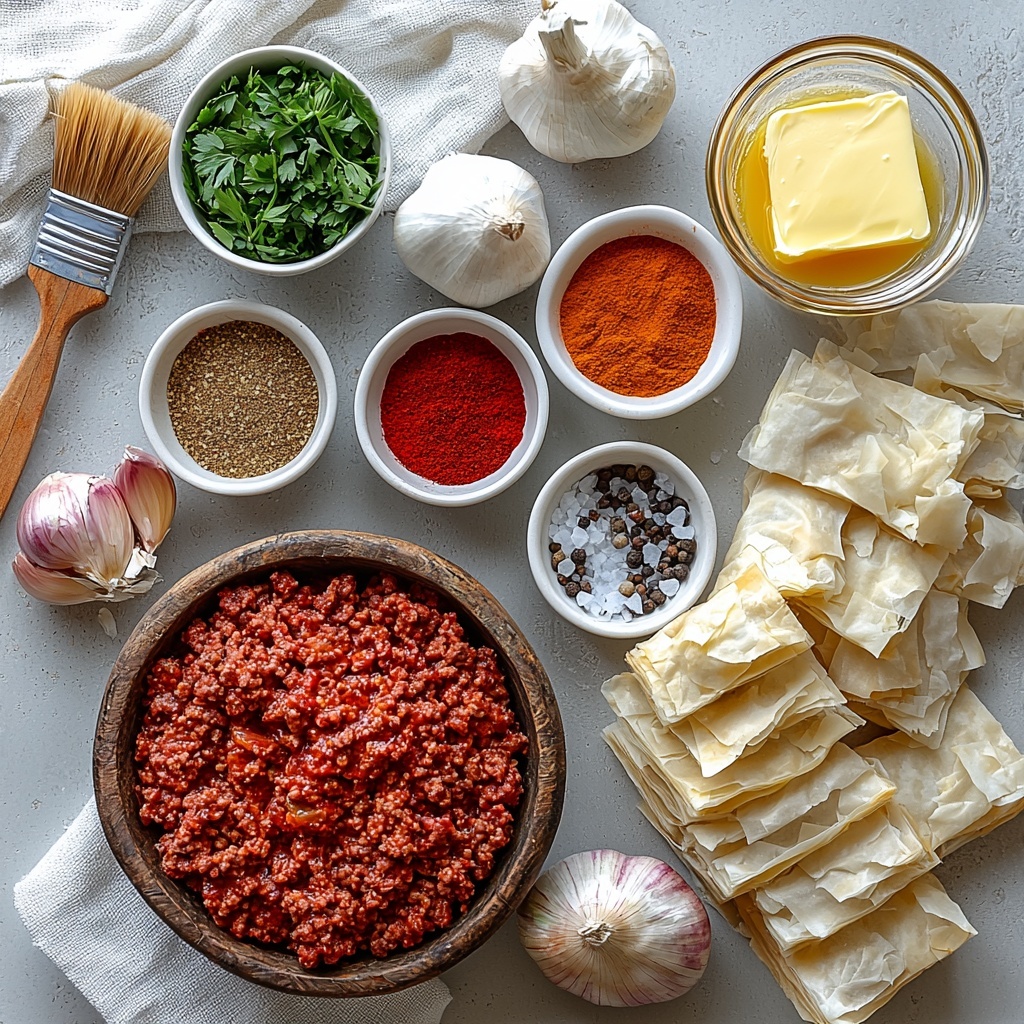 Egyptian Beef Goulash, also known as Phyllo Beef Pie, is a savory layered pastry featuring seasoned ground beef wrapped in crispy, buttery phyllo dough. This hearty dish combines aromatic spices like cumin, coriander, and cinnamon for a warm, flavorful filling, baked to golden perfection for a perfect balance of textures and taste.
