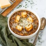 A rich and comforting French Onion White Bean Soup that combines the deep caramelized flavor of onions with hearty white beans, herbs, and a savory beef broth. Topped with crispy croutons and melted cheese, this soup is perfect for a cozy meal any time of year.