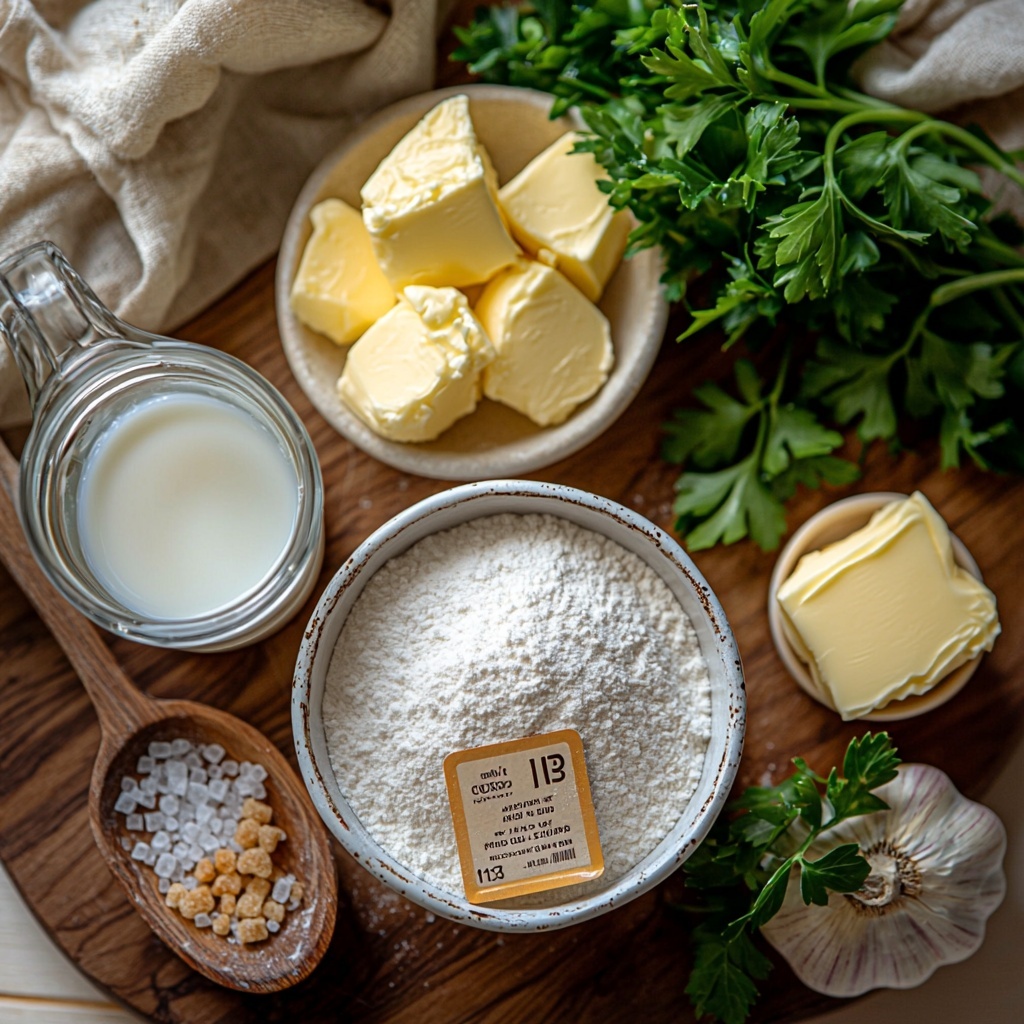 Putting together these delightful garlic butter dinner rolls requires just a handful of simple ingredients, each playing a crucial role in building the perfect texture and flavor. From the soft all-purpose flour to the aromatic garlic and fresh parsley, every component brings something special to the table.