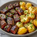 While freezing this dish is possible, it’s best to freeze only the cooked steak bites or potatoes separately before combining them after thawing. Freezing the whole prepared dish can slightly alter the texture of the potatoes. Wrap tightly in freezer-safe containers or bags and use within 1 to 2 months for optimal flavor.