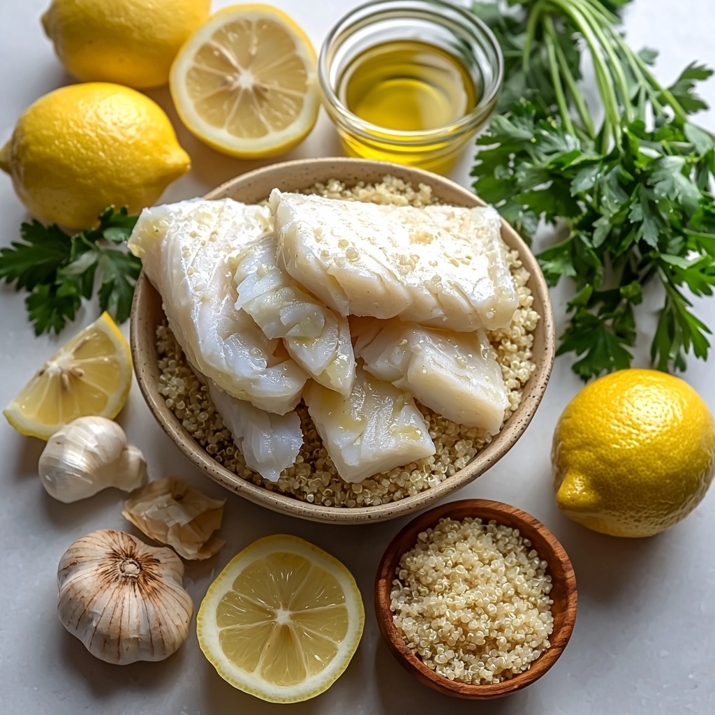 These ingredients are refreshingly straightforward, each playing a star role in delivering the vibrant flavors and satisfying textures that make this dish so special. From the lean, mild cod fillets to the nutty crunch of quinoa and the sharp tang of lemon, every component is essential.