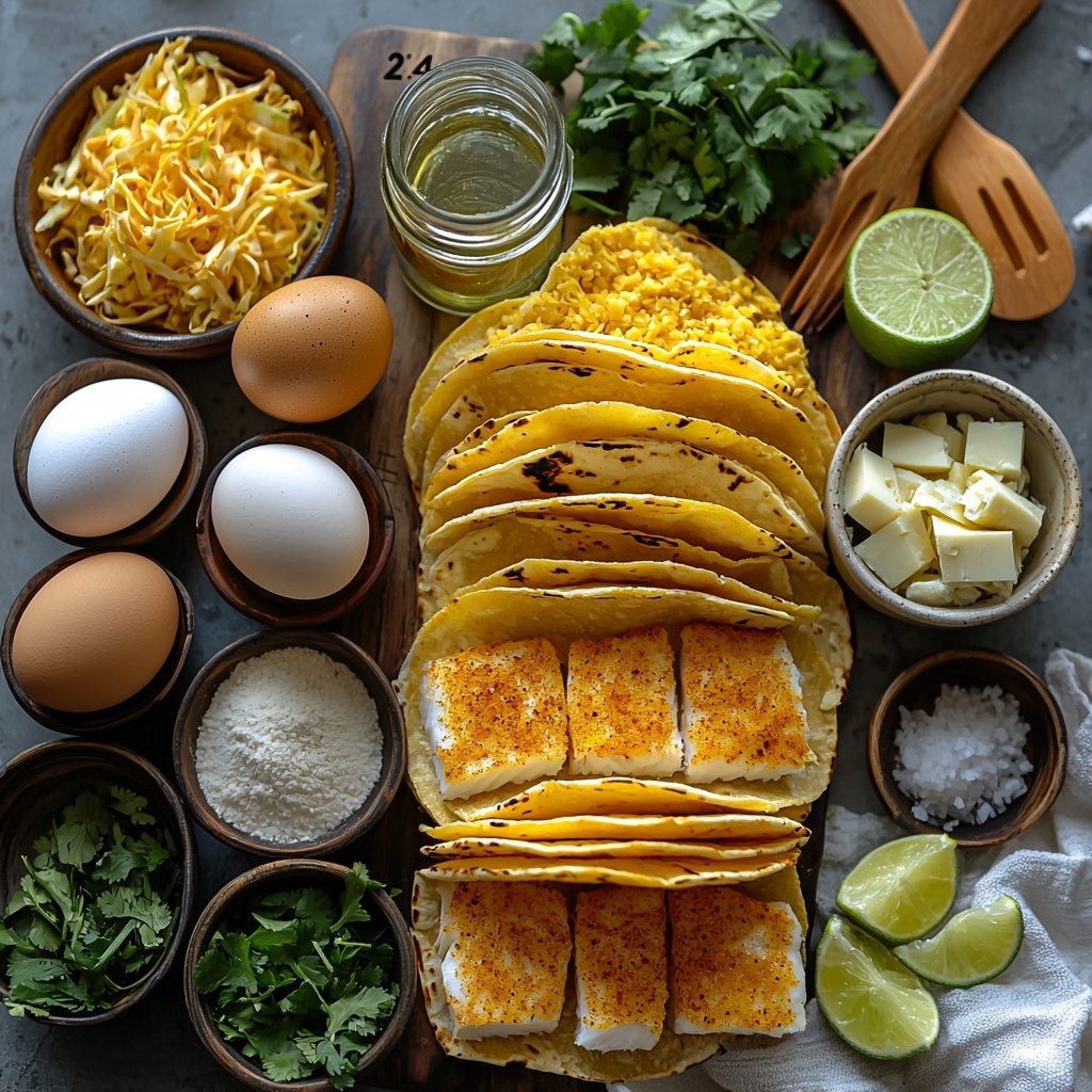 - Assemble Tacos: Place a few pieces of crispy fish on each warm tortilla, top with shredded cabbage, chopped cilantro, and a sprinkle of crumbled queso fresco or dairy-free alternative for flavor and texture.